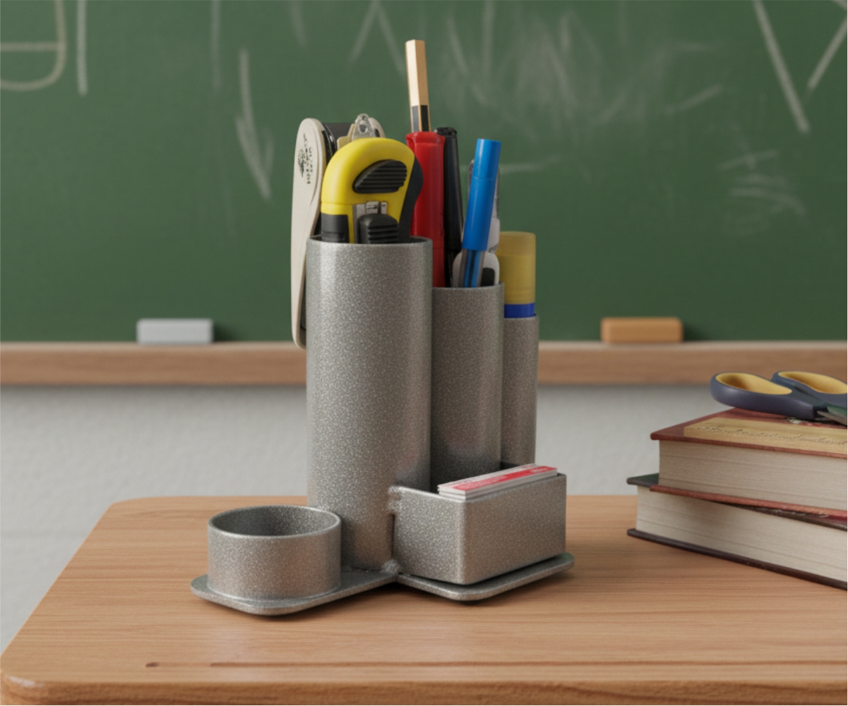 Keep your workspace clutter-free with this durable metal desk organizer by Kisaan Enterprise. Designed with multiple cylindrical holders of varying sizes, it provides ample space to store pens, pencils, markers, scissors, and other stationery essentials.