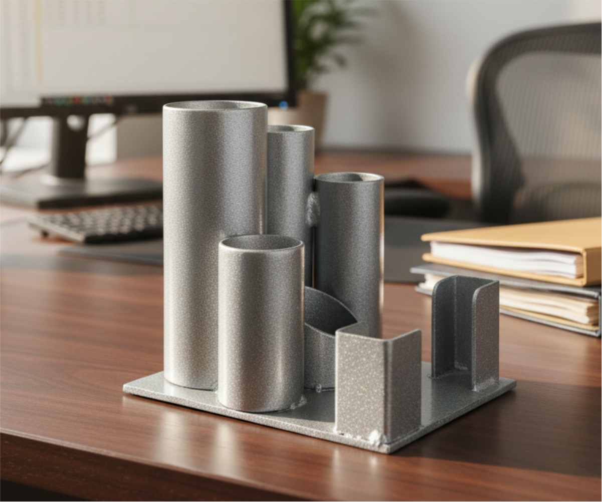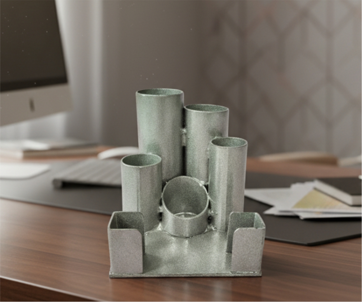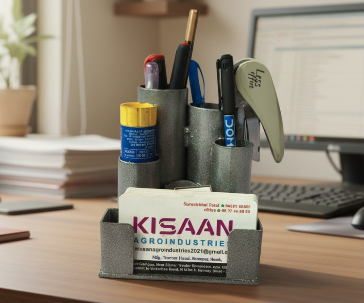 Keep your workspace clutter-free with this durable metal desk organizer by Kisaan Enterprise. Designed with multiple cylindrical holders of varying sizes, it provides ample space to store pens, pencils, markers, scissors, and other stationery essentials.